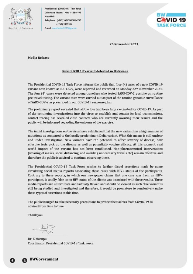 New Covid-19 variant (Omicron) detected in South Africa