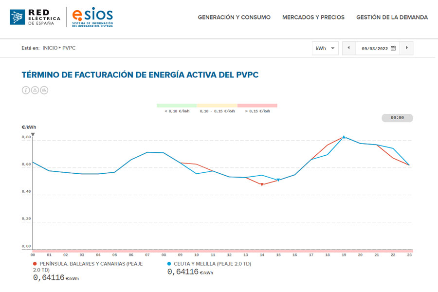 - www.ree.es - Red Eléctrica publica los precios de la electricidad de la nueva tarifa para el pequeño consumidor